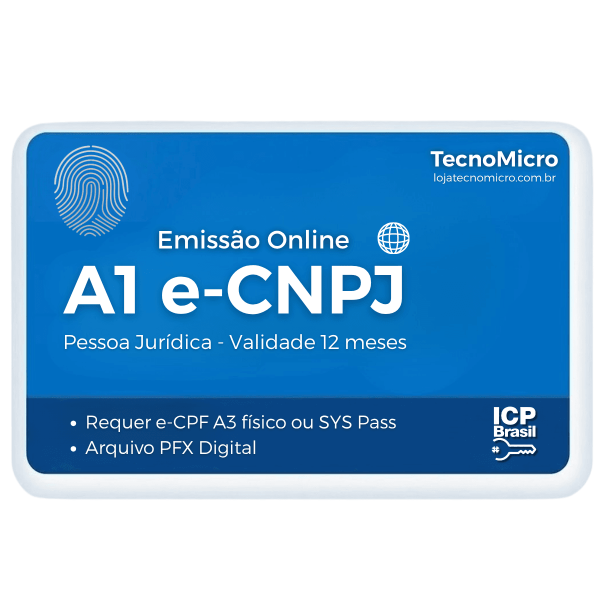 Certificado Digital A1 CNPJ com Emissão Online (sem videoconferência)