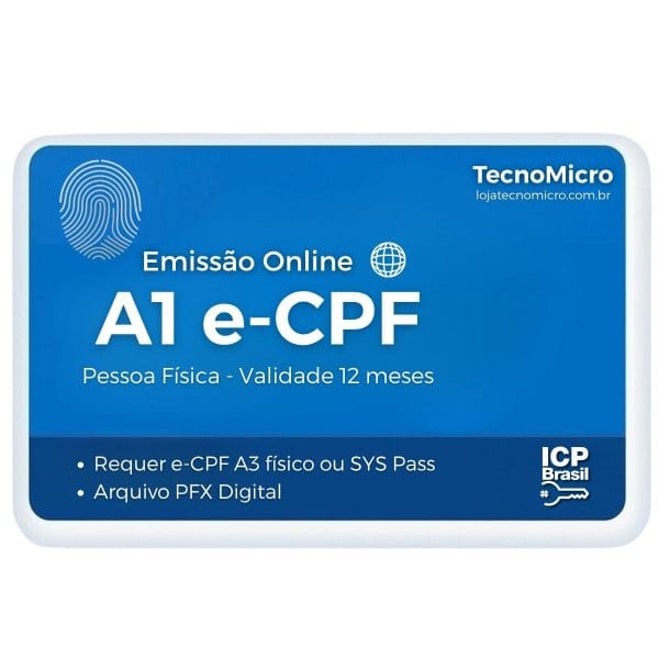 A1 e-CPF emissão online para quem tem e-Pass ou certificado do tipo A3 em token, não é possivel emitir caso não tenha.